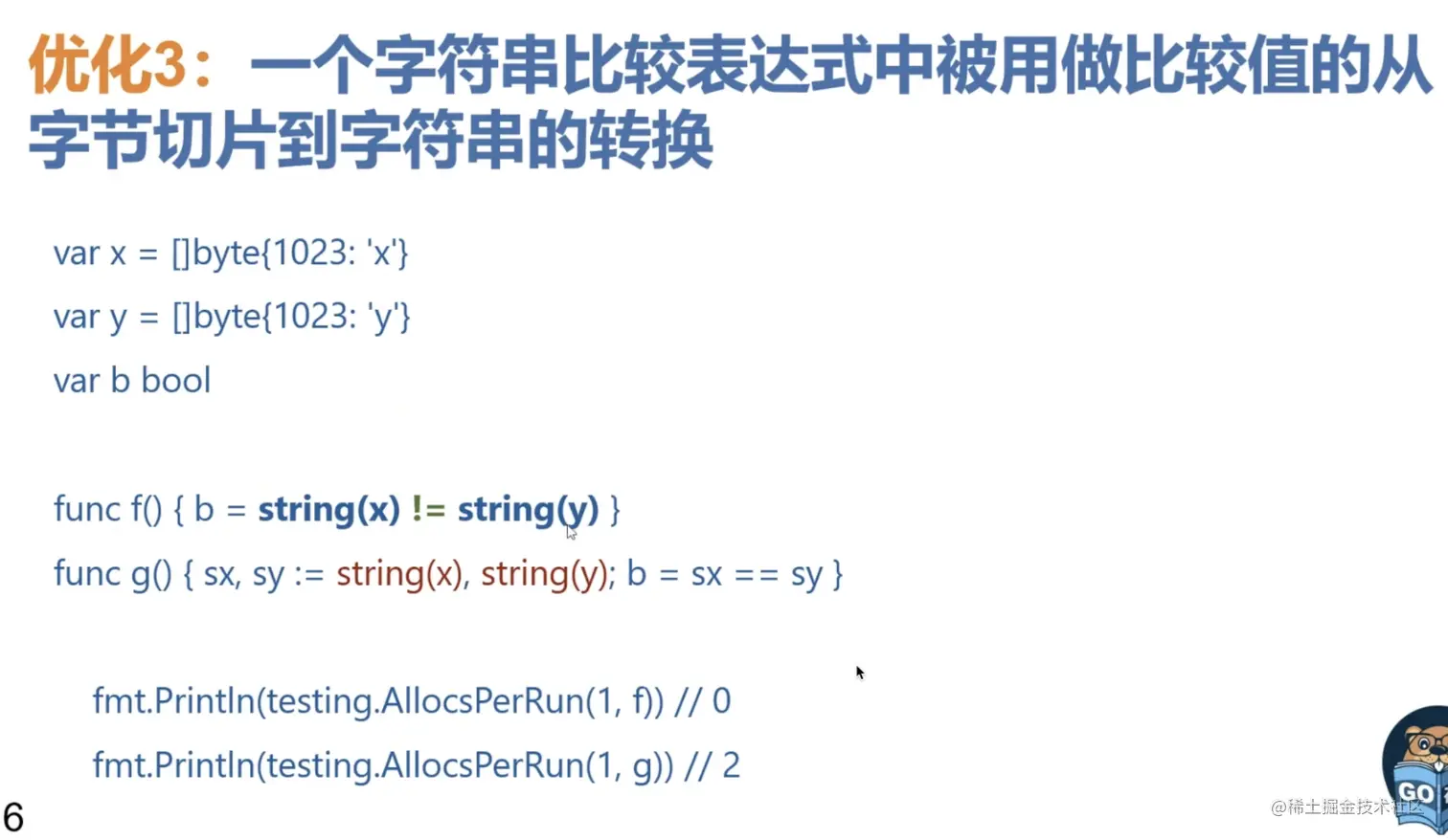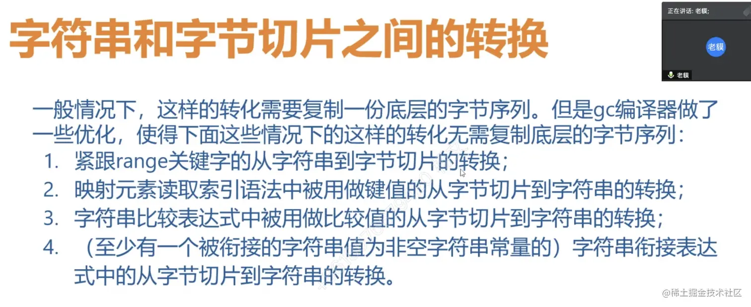 3.字符串比较表达式中被用做比较值的 从字节切片到字符串的转换
