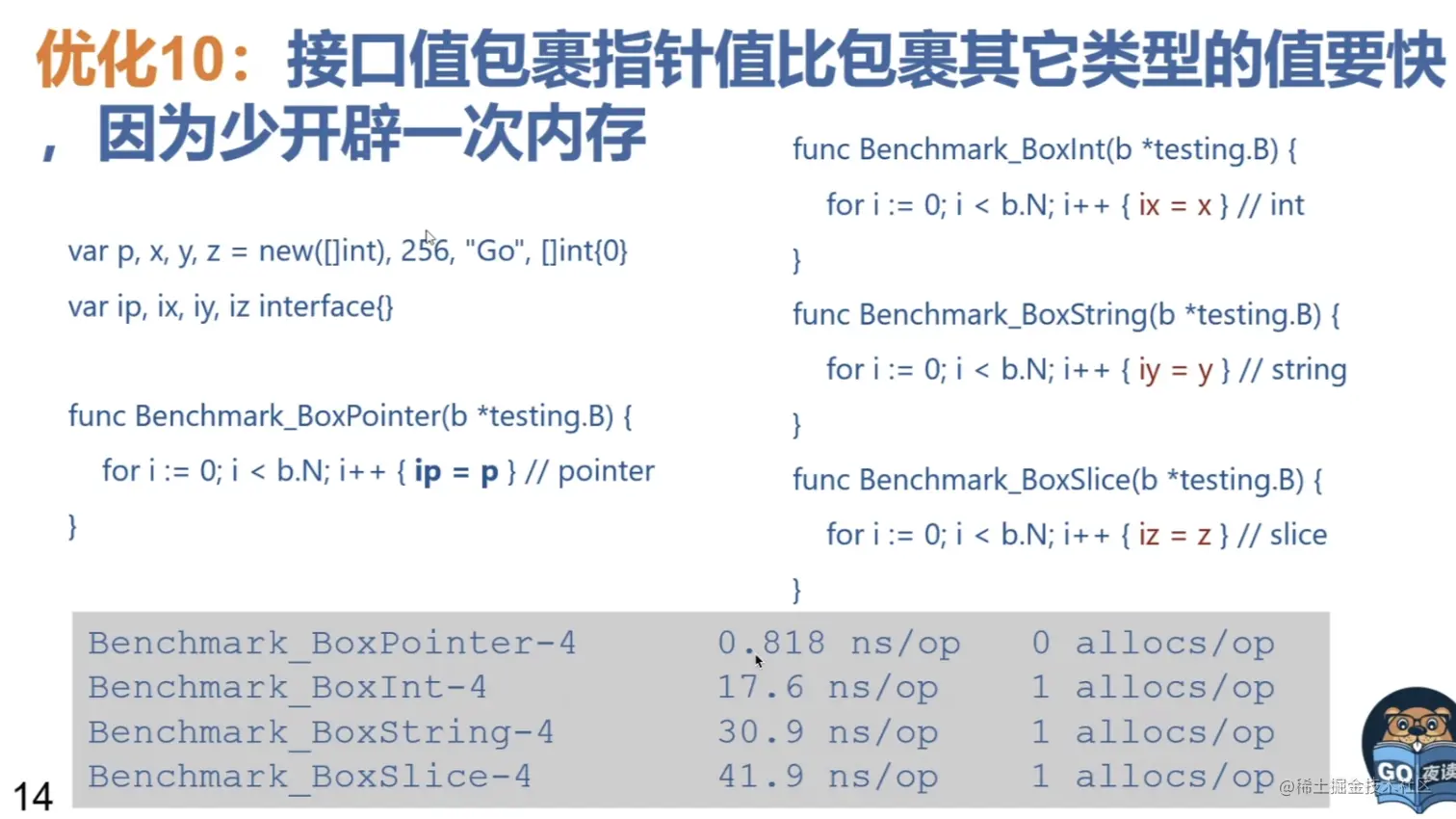 10.接口值包裹 指针值 比 包裹 其他类型的值 要快