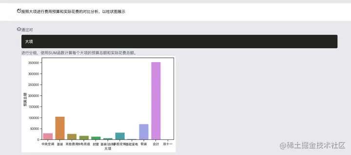 Q: 按照大项进行费用预算和实际花费的对比分析,以柱状图展示