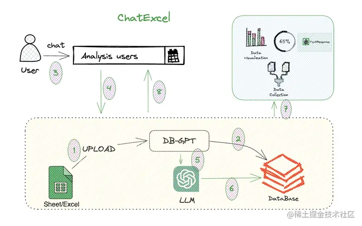 因此我们在DB-GPT(已开源,开源地址: github.com/eosphoros-a…)项目中, 充分利用了Excel支持Python的特性,可以通过自然语言对话的能力来使用Excel。我们希望可以通过大语言模型的能力,不断降低数据库、图表、知识、获取与分析的门槛。让70亿人都能够享受数据的价值。 让数据工具、产品的使用,不再是困扰我们的门槛。 因此DB-GPT中ChatExcel的能力来了,接下来让我们简单解读一下整个实现原理以及用户使用手册。