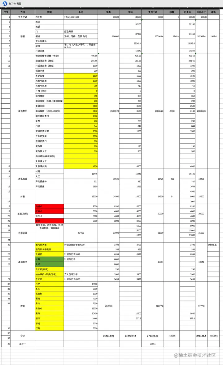 为了演示具体的功能,我们准备了一份装修清单的Excel数据,接下来我们通过这份Excel数据,进行具体的效果演示。