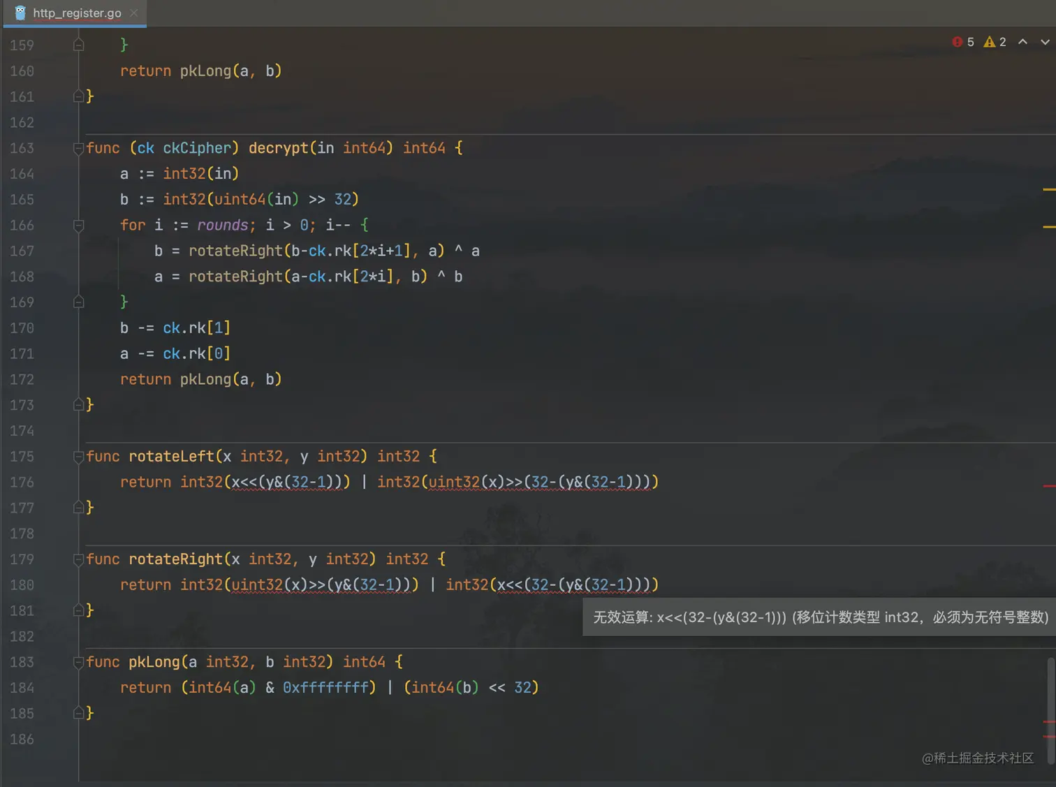 y为int32,将其强制转为uint32即可,