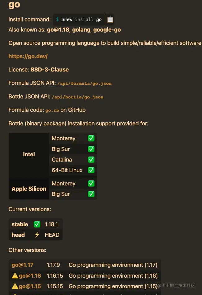 可以在这里找到所有可以安装的Go版本
