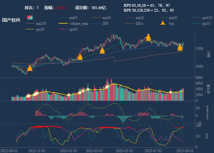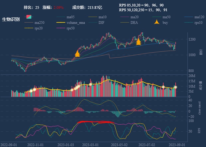 - 第一波行情 rps20 + 10日均线,第二波行情 rps50 + macd反转。