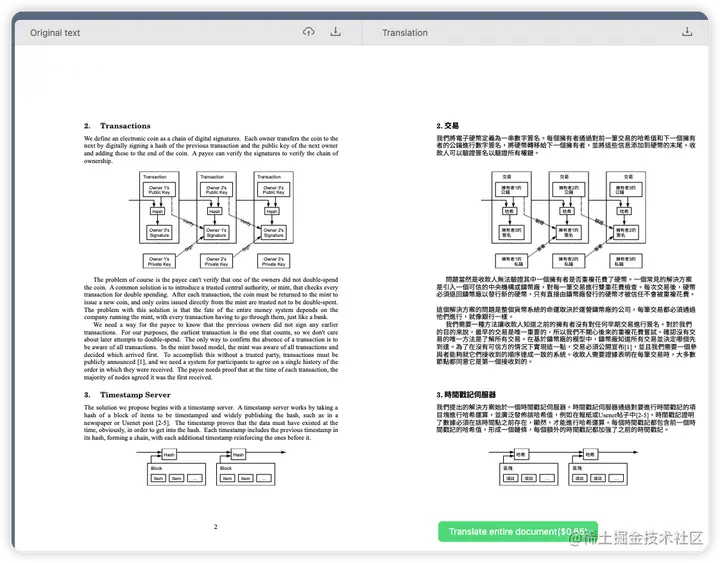 看介绍,这个网站用的AI翻译,可能是ChatGPT,我猜。。。不然还有谁。。。,我翻译了一份pdf文档,对比机器翻译是好一些: