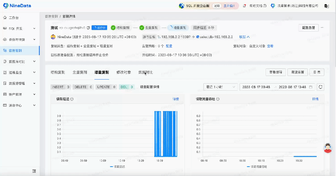 - 可观测可干预: NineData 提供强大的监控告警系统,及时通知您同步任务的状态和问题,让您能够迅速响应并解决潜在的同步风险。