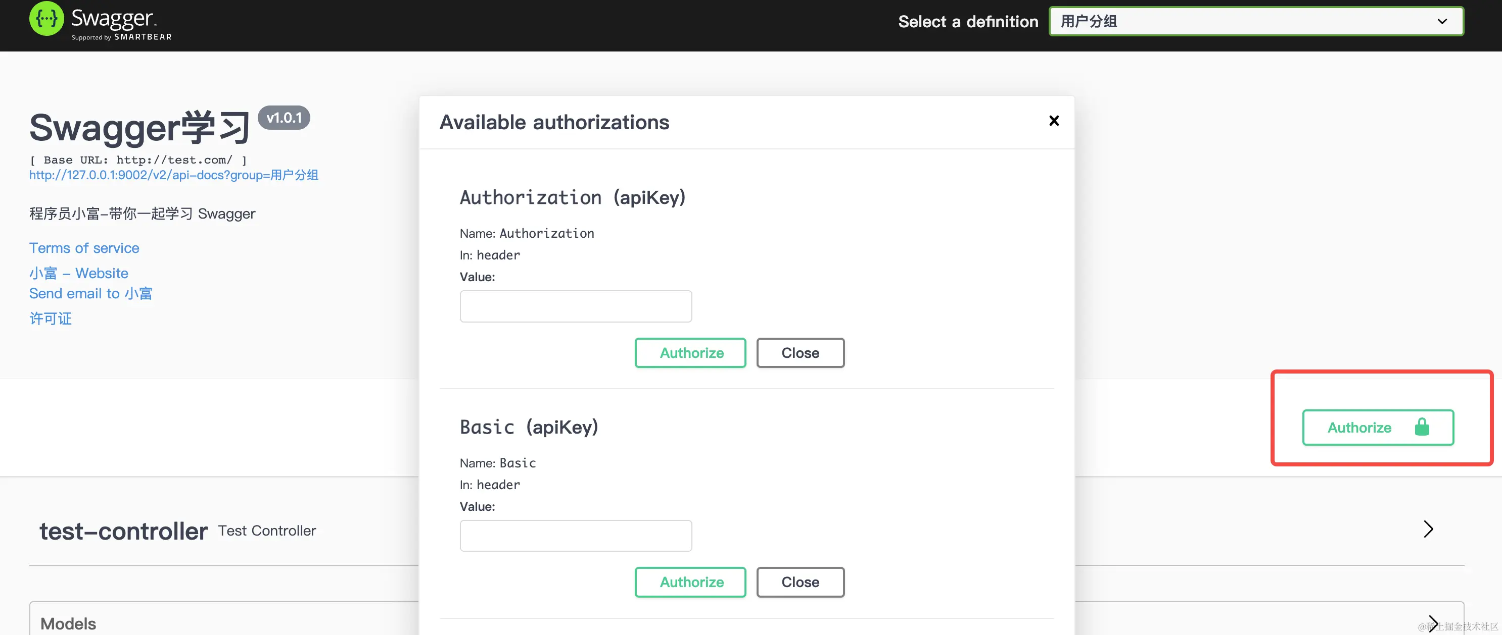 @Authorization(value = "basicAuth")