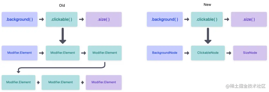 - 更快的重组:Modifier.Node 为重组提供可比较标的物, 非必要不重新生成 Node,重组性能得到提升。
