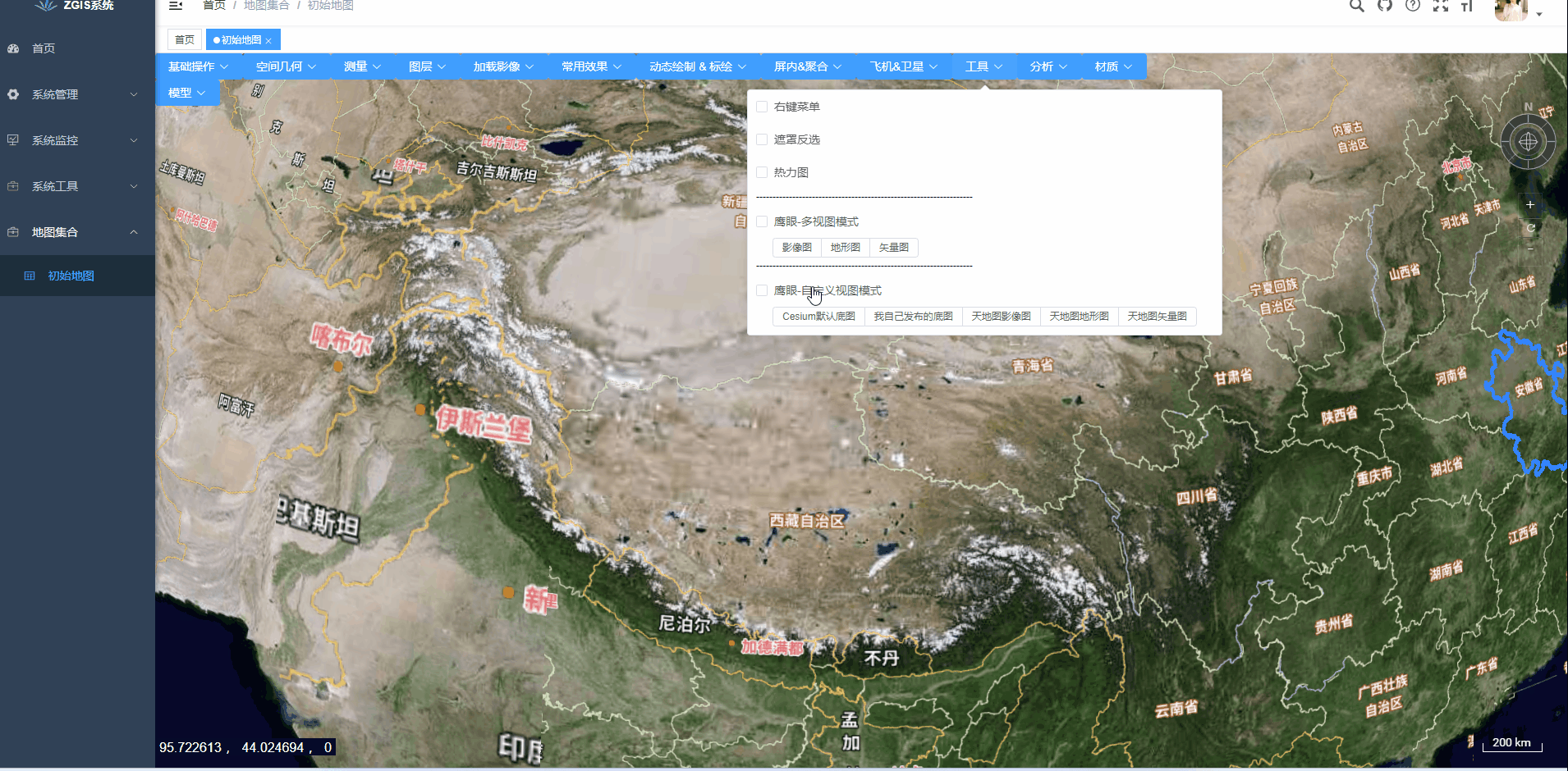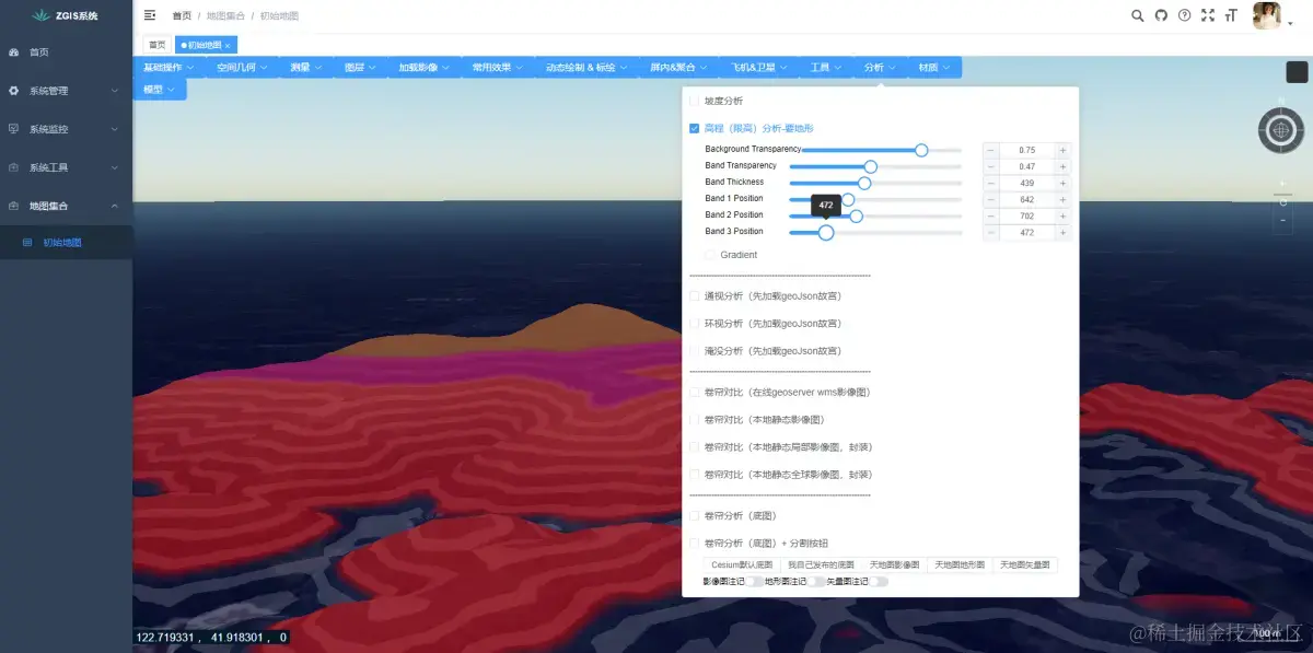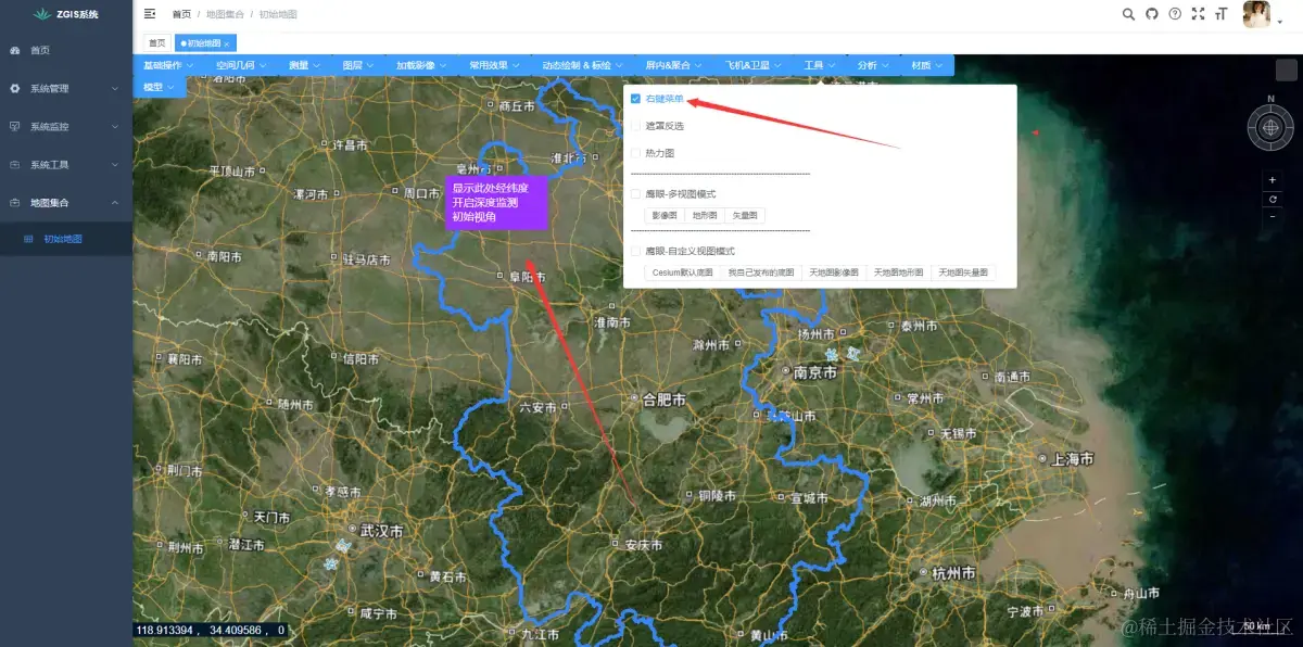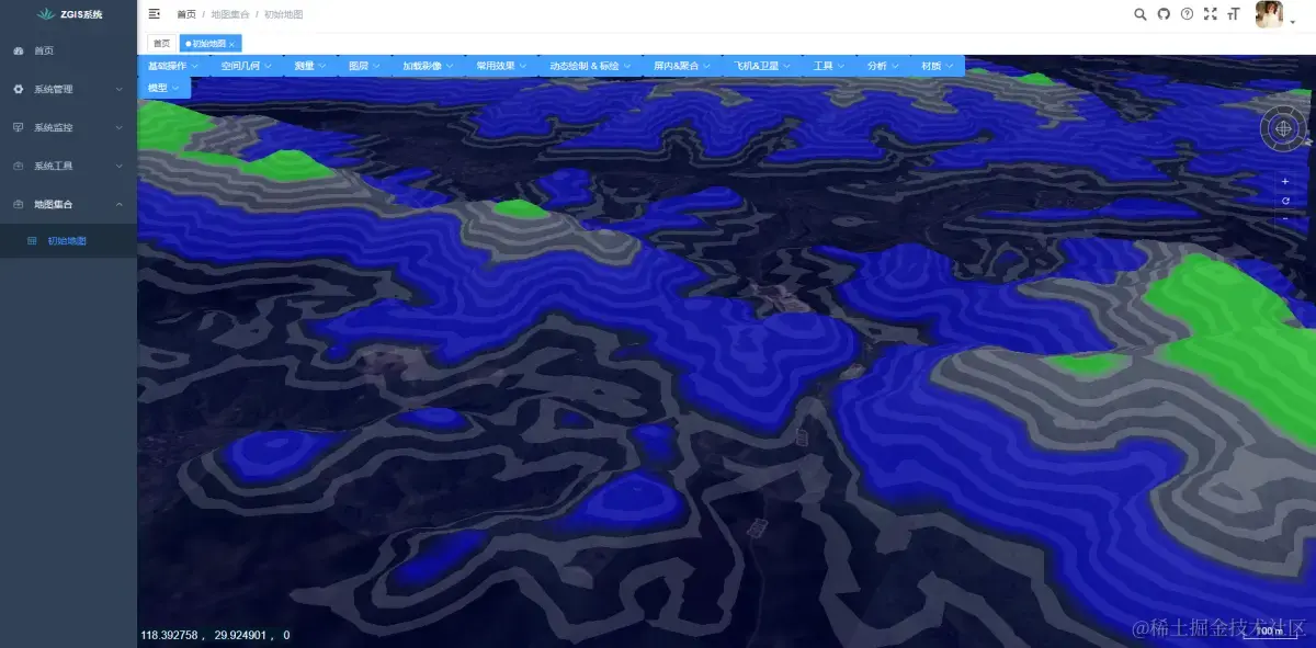 本脚手架可以前端独立运行。 本脚手架项目是前后端一整套,包括权限管理。前端框架采用Vue3 + js + ElementUI-Plus,后端采用Spring Boot + Mysql + Redis,GIS引擎本项目中是Cesium ,OpenLayers等其他GIS引擎编码的案例项目在其他博客有说明。如果仅仅是研究GIS功能,运行前端框架即可。