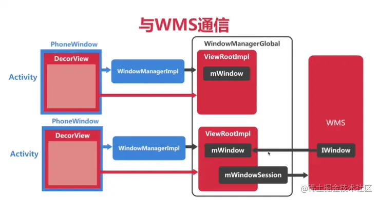 在多个 Activity 同时存在的情况下,每个 Activity 都有自己独立的窗口相关对象,包括 PhoneWindow、DecorView 和 WindowManagerImpl。这样可以确保每个 Activity 的窗口操作相互独立,互不干扰。WindowManagerGlobal作为一个全局的单例,持有每个activity的rootView ,mWindowSession和mWindow分别是和WMS进行双向通信的句柄。