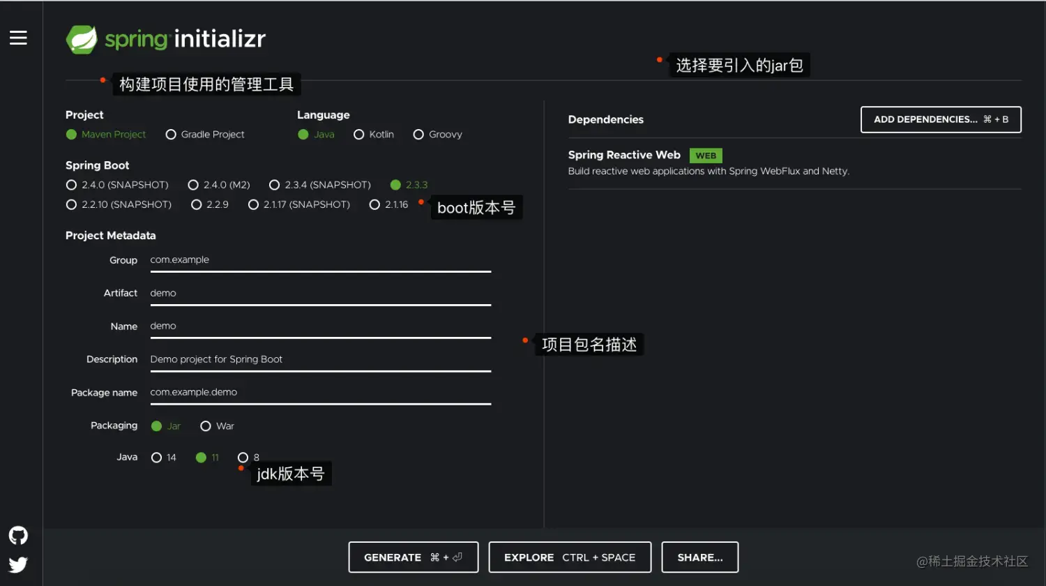 说明: springboot集成webflux可以自己手动集成,也可以用官方的快速集成工具