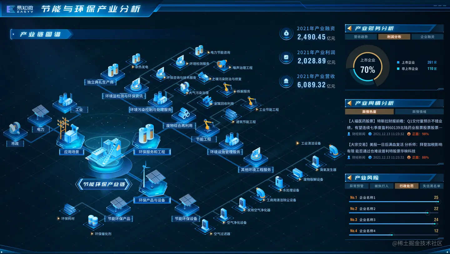 近年来,国家发布创建文明城市相关实施文件,推进各城市文明建设进程,环保举措刻不容缓。易知微数字孪生可视化大屏,可有效监测环境各项数据,包含大气、能源、交通等多个方面,助力城市环保事业,促进社会可持续发展。更多易知微可视化大屏模板,可前往官网查看。