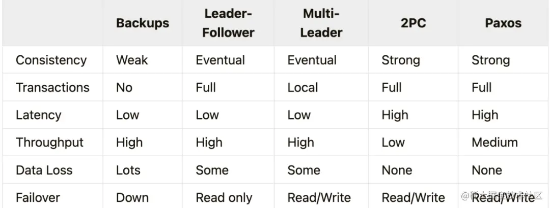 - 领导者-跟随者和多领导者复制。