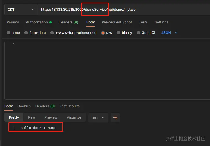 由此,kong网关的一个测试服务已经配置完毕,kong的监听客户端的端口是8000,注意不是8001。下面用postman通关网关来请求测试服务接口