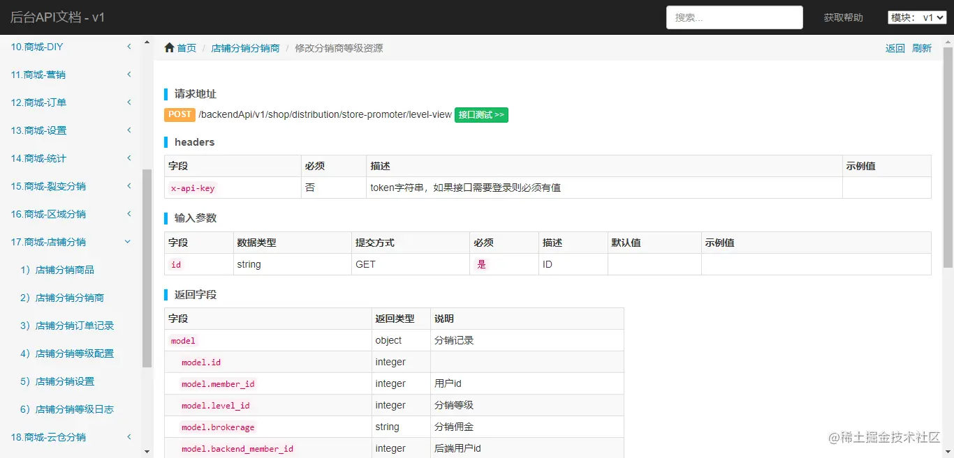 11.系统内集成了我们自研的的API文档,含一站式的文档、在线测试等功能,二次开发轻松拿捏。
