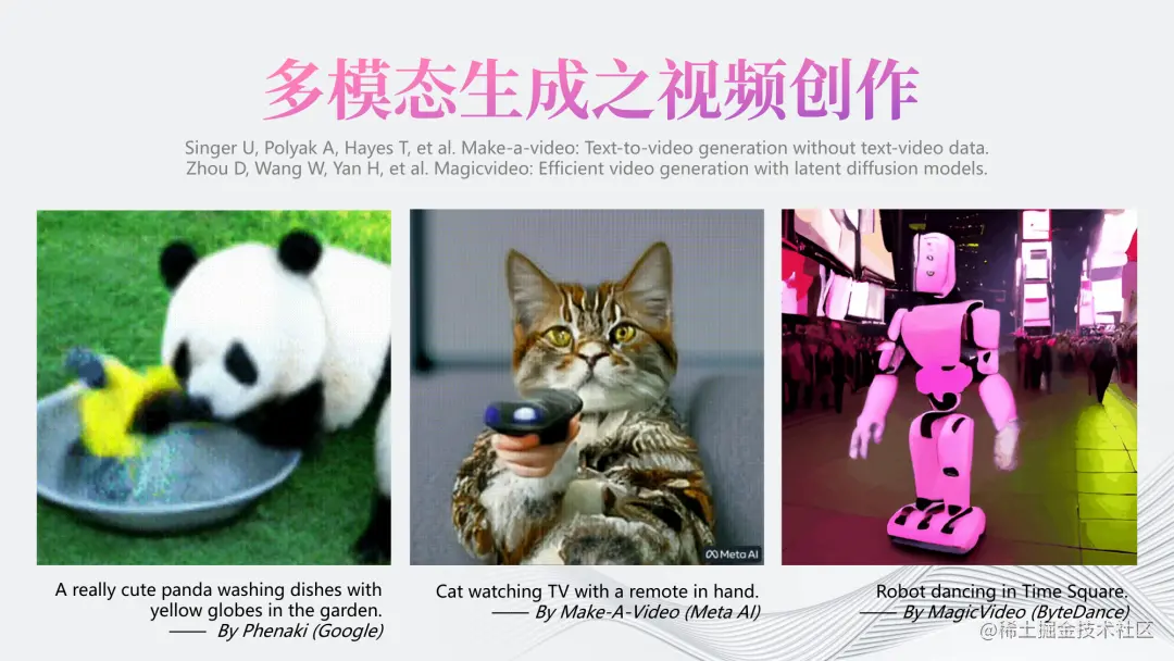 在视频创作方面,已经有 Runway 等几家公司在这个领域取得了突破,一些投资公司对这个领域比较看好,国内也可以有类似的公司出现。与文生图相比,文生视频仍然存在一些扩展性和通用性的差距,我认为这个差距至少还需要一到两年的时间来弥补。生成效果上,后者的水平大约相当于前者两年前的水平,这包括生成图像的质量和抖动性等方面。目前主要以生成短视频为主,生成长视频时,一般是通过合成短视频并添加滑动窗口等工程技术来实现。就原理性技术而言,并没有突破 "stable diffusion" 框架,即以 CLIP 和 transform 为基础加上扩散技术的框架。