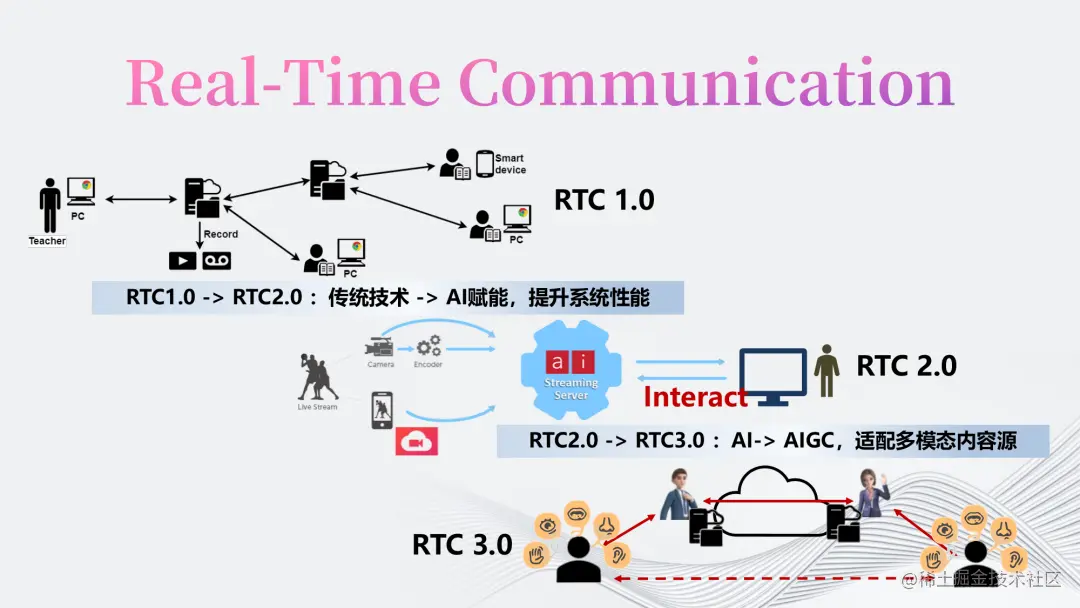 过去几年,特别是去年和前年,RTC(实时通信)是非常热门的技术。现在我们再回过头看看 RTC 和 AIGC 之间的关系,会有一些有趣的发现。