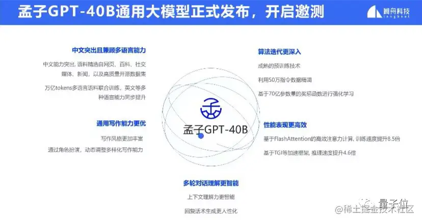 据发布会介绍,孟子 GPT-40B 主要在中文及多语言能力、写作、多轮对话等方面做了提升。