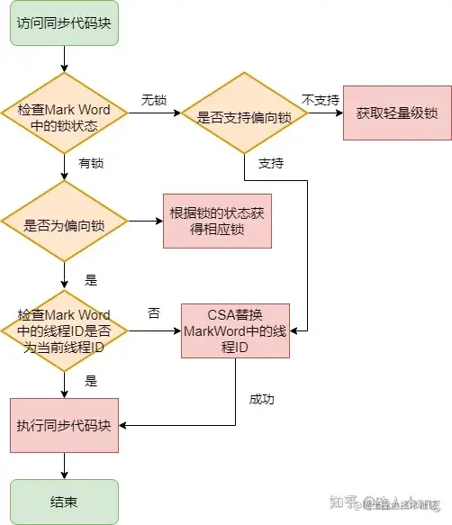 - 如果是,判断Mark Work中的线程ID是否指向当前线程,如果是,则执行同步代码块。