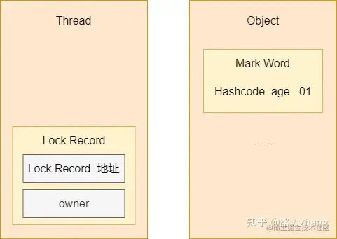 - 将对象的Mark Word复制到栈帧中的Lock Record中,并将Lock Record中的owner指向当前对象,并使用CAS操作将对象的Mark Word更新为指向Lock Record的指针,如图所示。