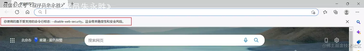 通过该快捷方式打开 Edge,如果顶部出现如下提示,则说明设置成功。再次尝试之前访问失败的资源,看看在当前浏览器环境下是否可以成功访问。