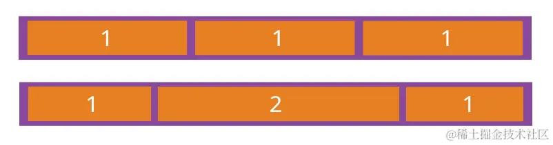 如果所有项目的flex-grow属性都为1,则它们将等分剩余空间(如果有的话)。如果一个项目的flex-grow属性为2,其他项目都为1,则前者占据的剩余空间将比其他项多一倍
