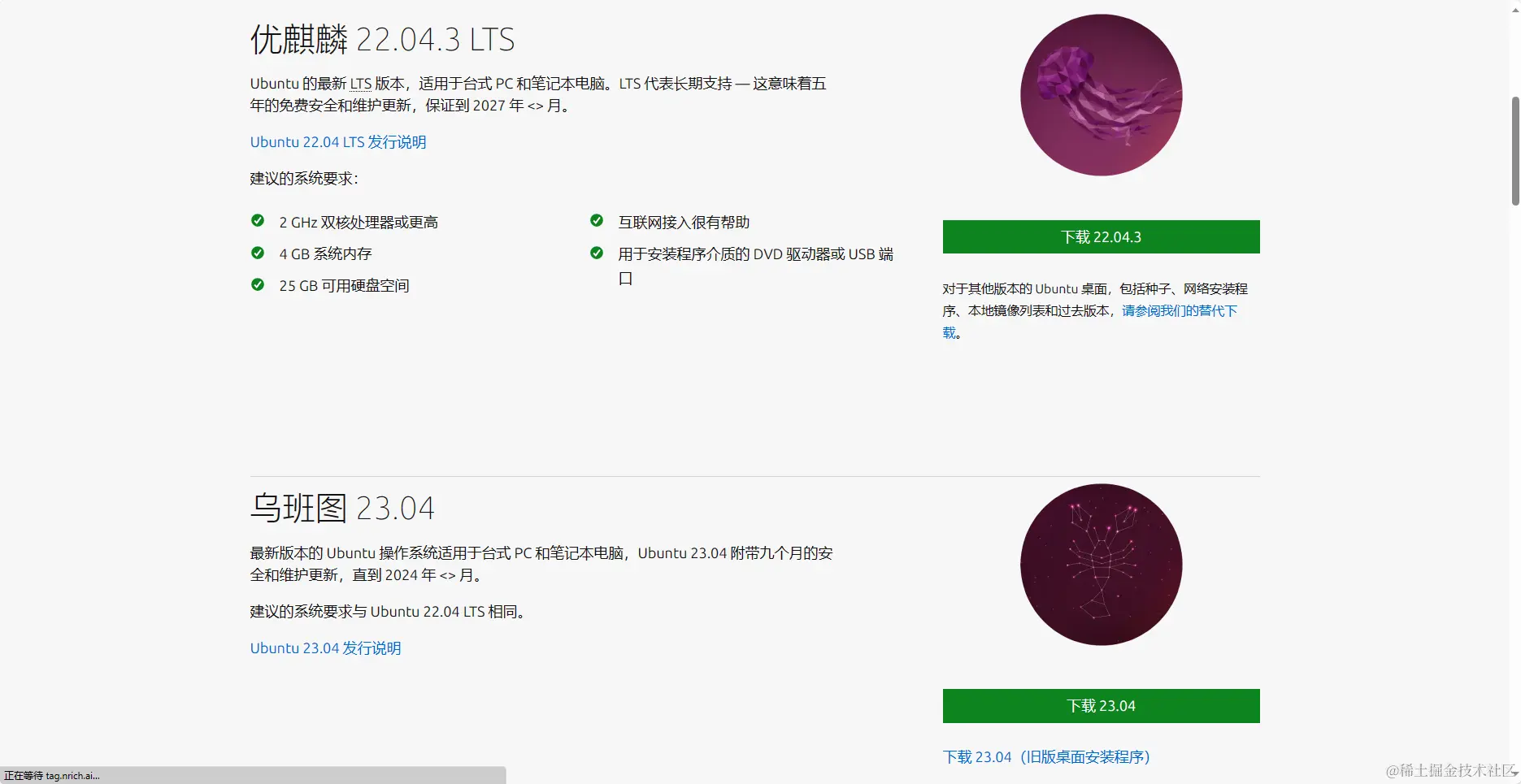 系统选择肯定是Ubuntu了,毫无疑问,直接去linux官网下载,版本可选择近几年的,不要太老: