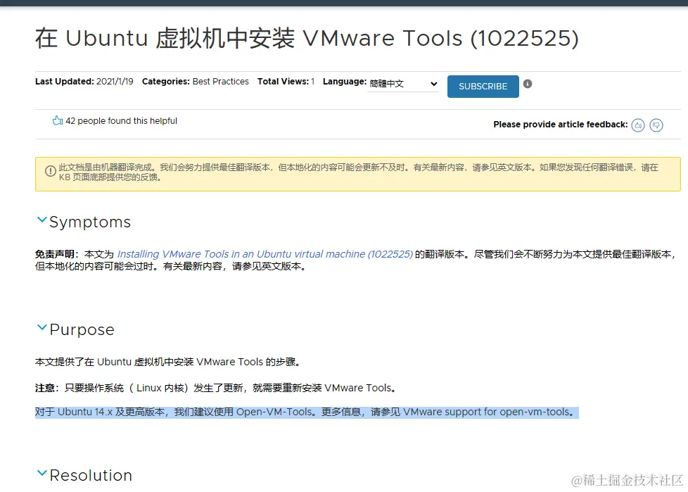 安装虚拟机,那么VMware Tools是必不可少的,但是Vmware带的闭源版本不好装,而官方文档,也给出这一点: