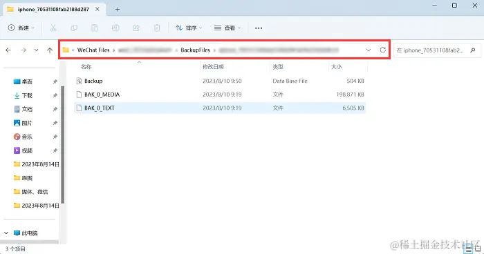 步骤4:按照上述路径依次打开文件夹,可以看到几个经过加密的文件,一般语音、图片等数据都被加密储存在这几个文件中。