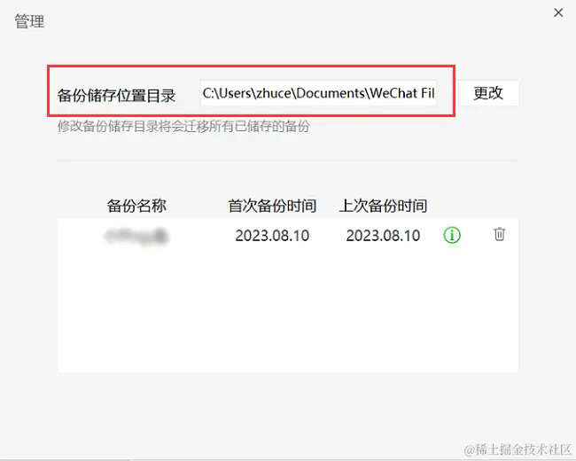 步骤3:在【管理】页面即可查看到聊天记录备份的储存位置: