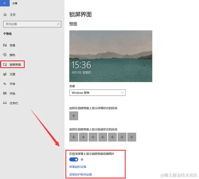 步骤3:在左侧菜单中,选择 【锁屏界面】 ,可以在右侧选择锁屏背景、屏幕超时等。