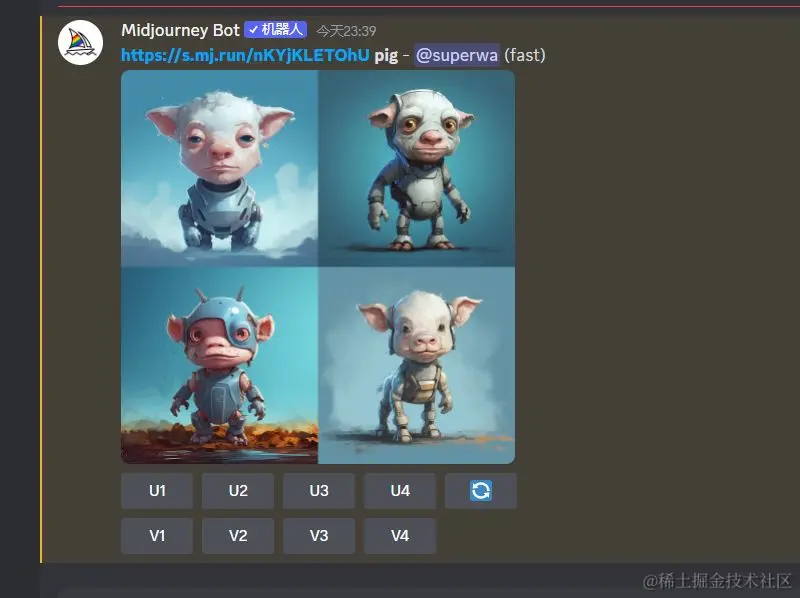 垫图就是让midjourney根据你喂的图生成风格类似的图片。如下: