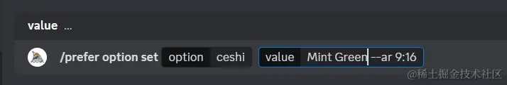 比如:我创建了一个名为ceshi的变量,值为 Mint Green --ar:9:16