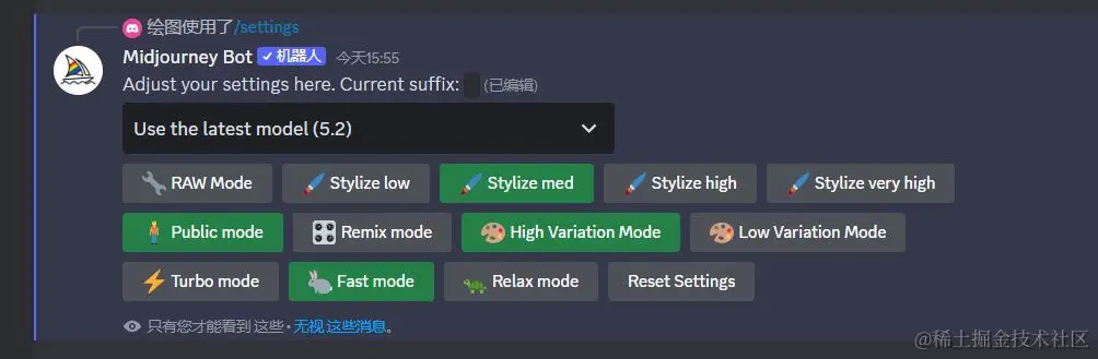 指定后缀,比如你想在每次的提示词后面添加默认后缀--ar 16:9。则
