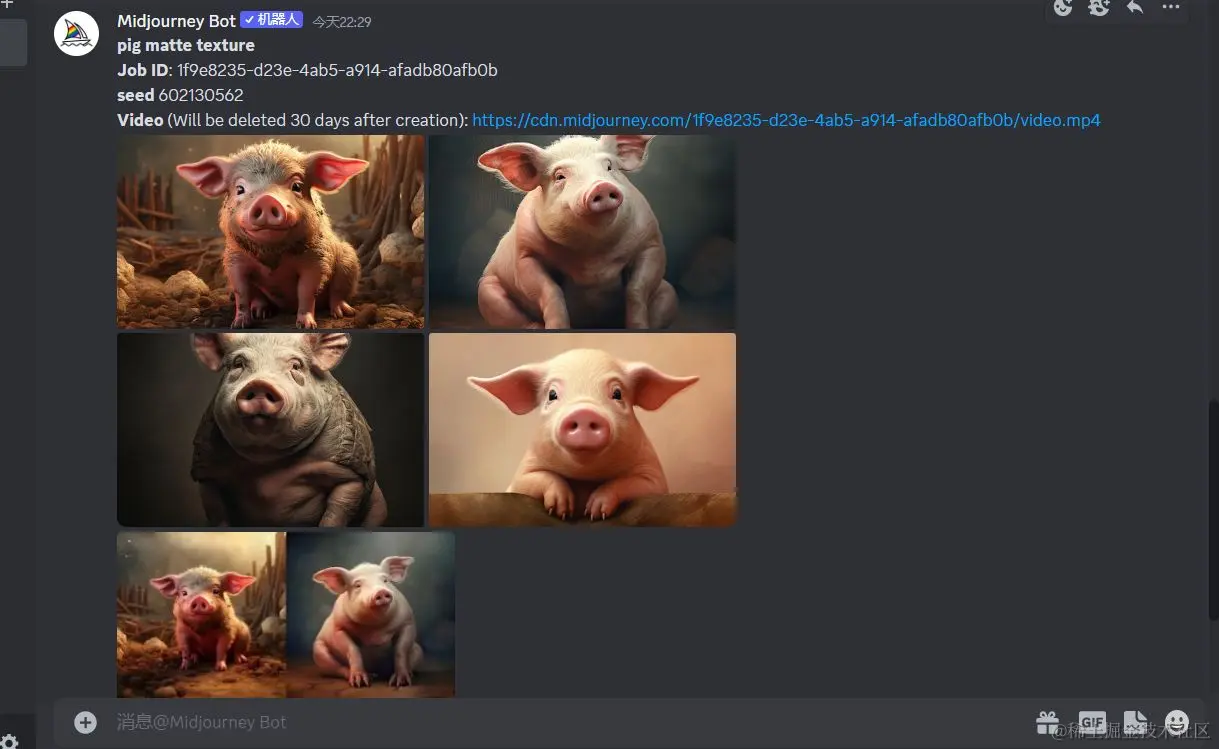 这个时候,机器人就会将图片的job id,seed值,以及生成的video发送给你