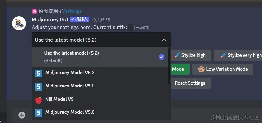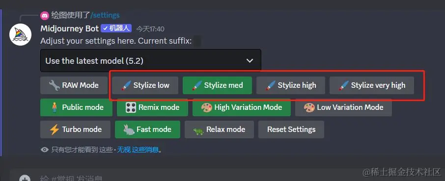 风格低 = --s 50,风格中 = --s 100,风格高 = --s 250,风格非常高 = --s 750**