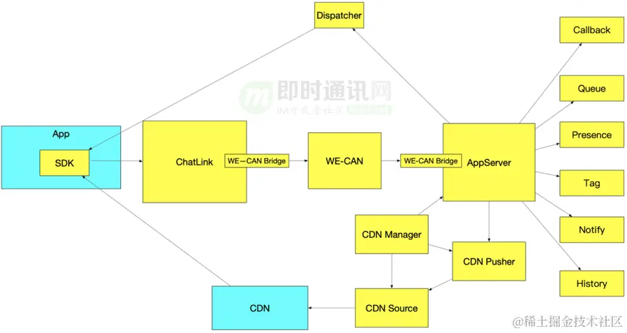 如下图,是网易云信聊天室的技术架构: