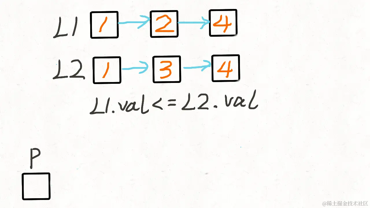 // 如果链表1中当前节点的值小于或等于链表2中当前节点的值