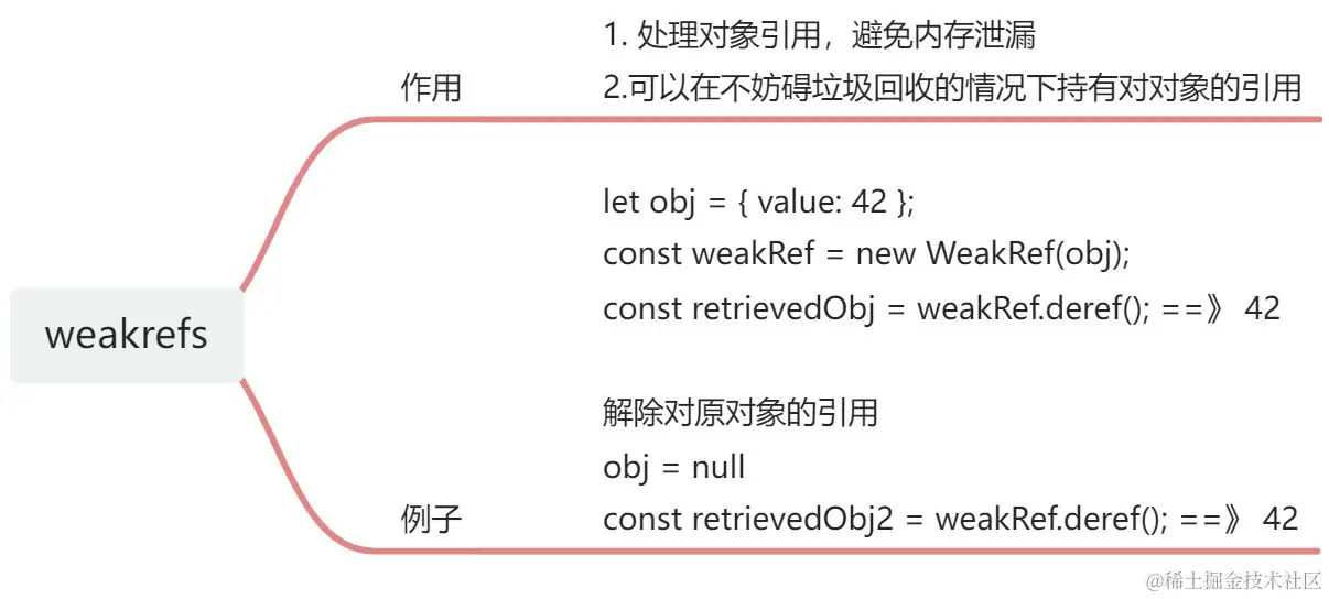 - weakMap是弱引用, 当没有其他引用指针指向sumbolKey或objKey, 它们会被垃圾回收