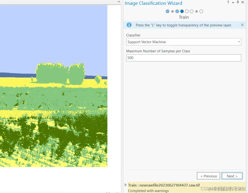 随后,我们即可选择不同的分类方法。在这里,我选择了支持向量机方法;关于不同分类方法的对比,大家可以参考文章# 栅格图像分类:最小距离法、最大似然法、支持向量机的ENVI实现。