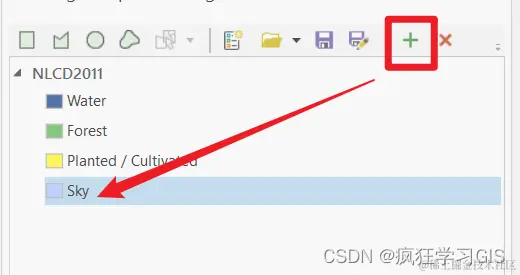 不过需要注意,点击加号的时候,要注意将鼠标放在你的Schema名称上,在上图中也就是“NLCD2011”这个字段上;否则,很容易会使得新建的类别成为某个已经存在的类别的子类别。