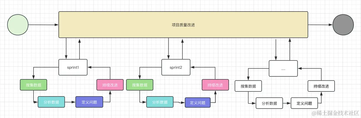 - 第一是质量改进并不是这一个季度或者这半年的事情,而是未来我们一直要去做的一件事,即便迭代质量在未来得到了很好的改善,我们依旧需要去关注迭代以及工作流中的问题,发现缺陷并改进问题,所以让大家都知晓方法论以及如何实操就非常重要(而不是面对盲目猜测没任何依据)