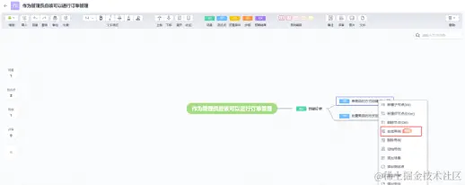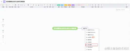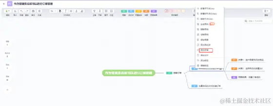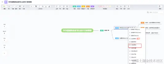 Step1:选择左侧“需求目录-凤凰商场-订单管理-作为管理员应该可以进行订单管理”结点,点击 “普通新建”,进行思维导图的创