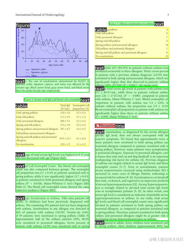 版面分析主要用于文档检索,关键信息提取,内容分类等,其任务主要是对文档图像进行内容分类,内容的类别一般可分为纯文本、标题、表格、图片和列表等。但是文档布局、格式的多样性和复杂性,文档图像质量差,大规模的带标注的数据集的缺少等问题使得版面分析仍然是一个很有挑战性的任务。 版面分析任务的可视化如下图所示: