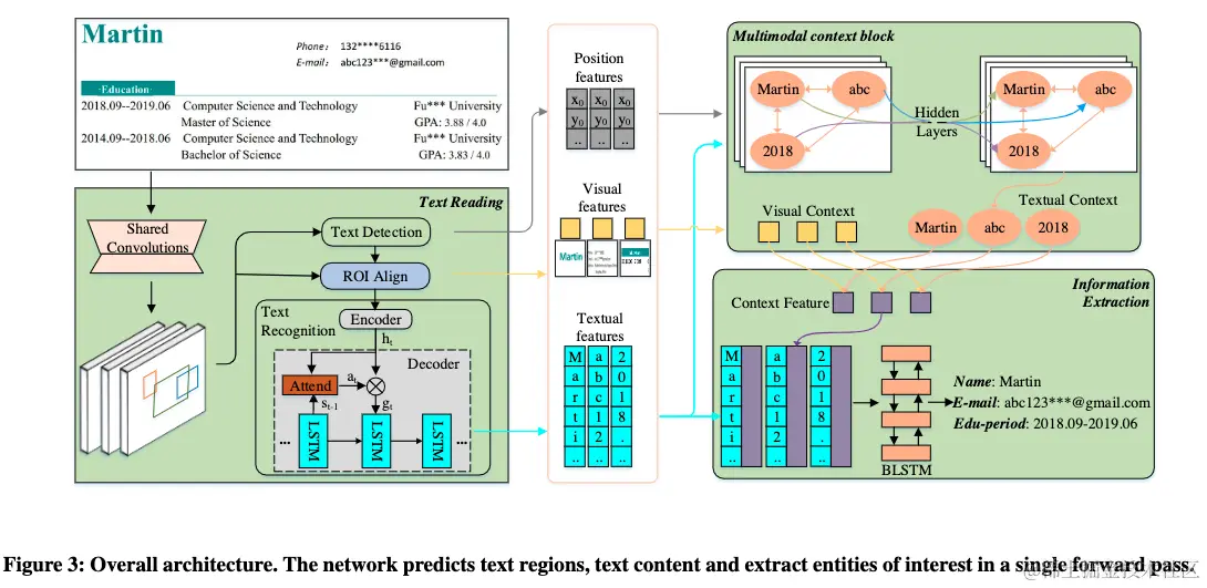 - 信息提取模块: 借助OCR结果和图像信息来理解和识别文档中表达的特定信息或信息之间的关系。