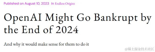 8月10日,印度媒体Analytics India Magazine发布惊天“预言”:Open AI或将在2024年底被迫申请破产。