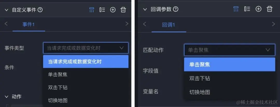 本次更新不仅将自定义事件和回调更新为最新的配置项面板,并且在「回调参数管理」和「自定义事件」中都增加了切换地图的选项,可以提升地图组件的自定义体验,丰富更多可视化场景应用。