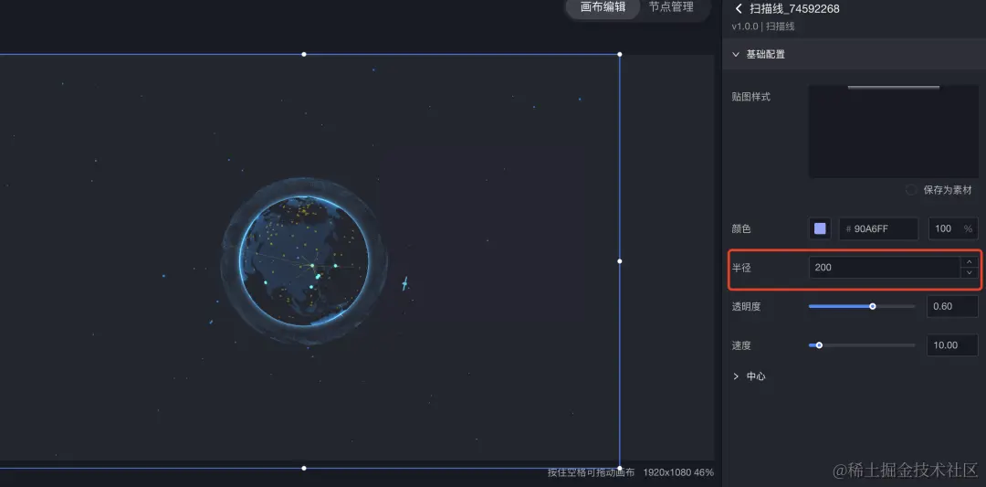 该功能可实现扫描不贴在地球表面的效果,也让用户更加灵活地控制扫描线的覆盖范围,例如可以实现扫描线从内向外逐渐覆盖区域的动态效果。