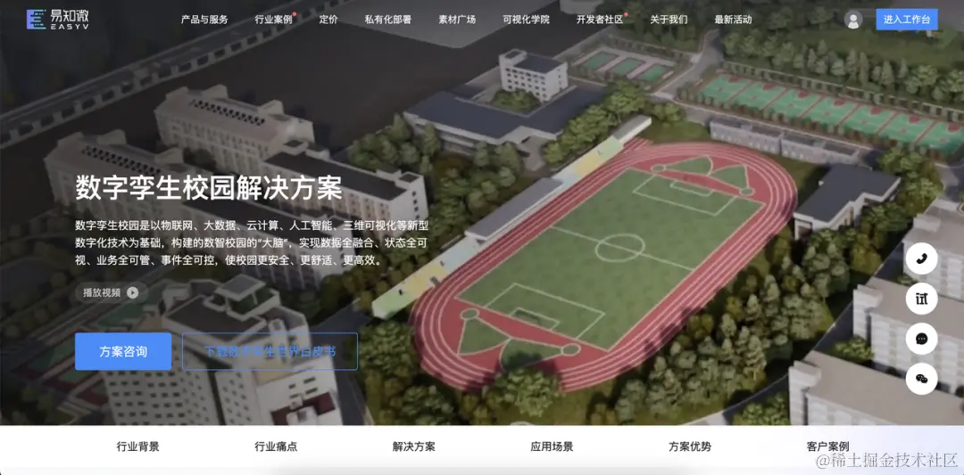 立即前往官网查看最新解决方案,更多行业解决方案等你查看 易知微-EasyV数字孪生|智慧城市园区工厂水利双碳|三维地图数据可视化大屏